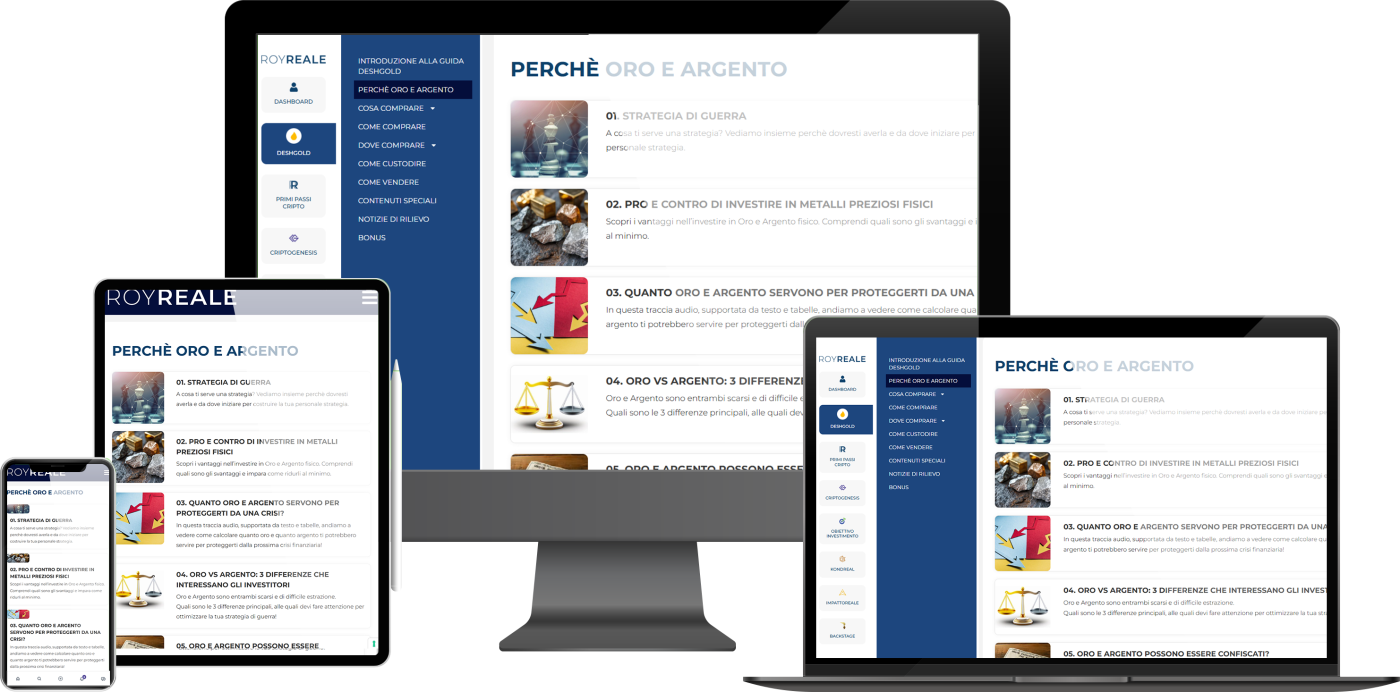 devi poi fruire dei contenuti e seguire le istruzioni passo dopo passo per proteggere i tuoi risparmi investendo in oro e/o argento fisico.